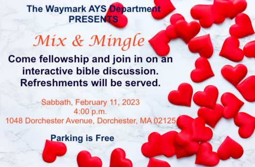 Adventist Youth Service (AYS) is at 5:00 p.m., when announced. Please also check the events page for any events happening during this time during the winter season.
